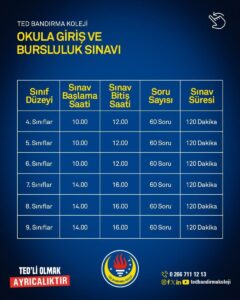 TED OKULA GİRİŞ VE BURSLULUK SINAVI